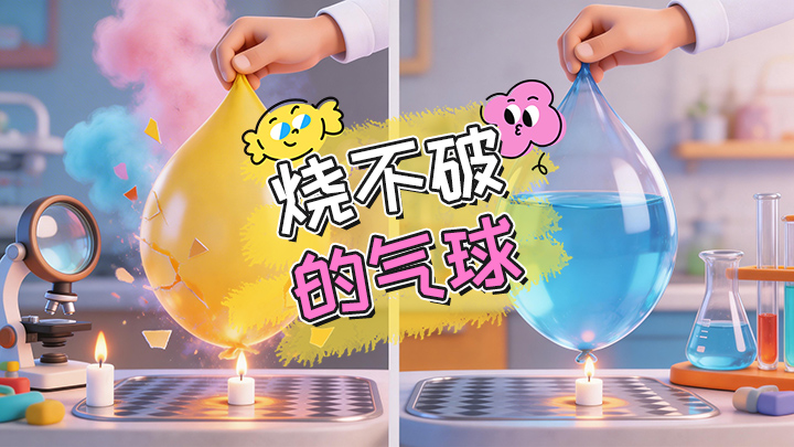 这个「装水气球遇火不爆」实验,是幼儿园到小学阶段超经典的热传导启蒙小实验,全程材料家里都有、操作简单安全,3 岁 + 小朋友就能在家长陪同下亲手操作,直观理解「水的比热容与热传导」的科学原理,是亲子互动、科学启蒙的绝佳选择。