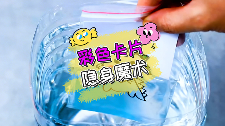 4. 将密封袋缓慢垂直浸入清水中,引导孩子观察彩色图案 “隐身” 的神奇现象;