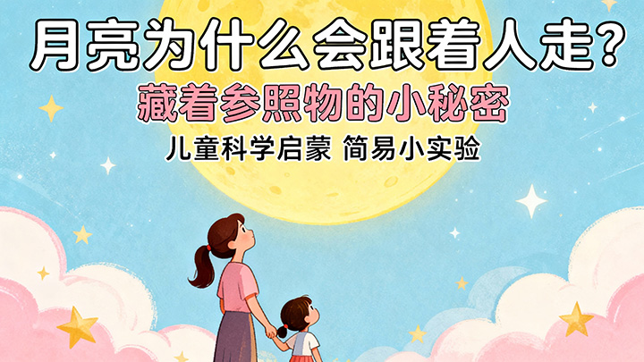 这是一个引导孩子理解“参照物”和“相对运动”概念的绝佳例子。可以做一个简单的科学实验法模拟:让孩子手指当“月亮”,眼睛盯着手指,同时转动身体或行走,感受近处景物在动而“月亮”不动。理解了这一点,就迈出了理解宇宙尺度的大门。
